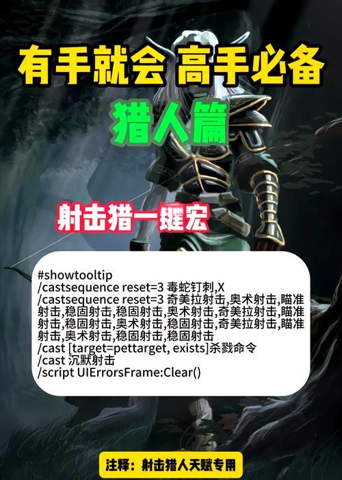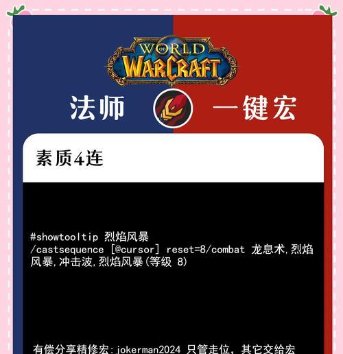 获取和使用魔兽宏代码大全能够为玩家的游戏体验带来巨大的便利,无论是通过官方社区、第三方网站、视频教程还是自己动手编写,总有适合您的方式。记住定期更新和维护您的宏代码,以保证其持续有效性。希望本文能够帮助您更加深入地了解和掌握魔兽宏命令的使用,祝您在魔兽世界中游戏愉快。